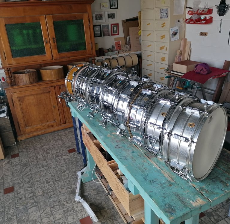 I bring old drums and snare drums back to life, restoring their beauty and sound.